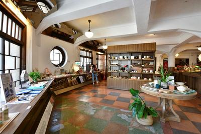 地板為⽊質,屋頂使⽤傳統的 閩南紅板⽡。整體來說東興洋 ⾏可以說是以本⼟建材來營造 西⽅空間的⼀個佳例。