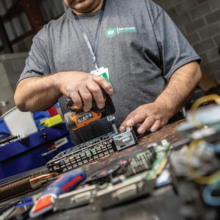 In 2024, we processed more than 5.2M pounds of electronics and technology devices, and our activities prevented more than 23,484 metric tons of carbon dioxide (CO2) from entering the atmosphere.