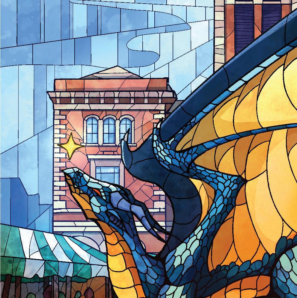 Shown are illustrations by Daria and Olya, the dragon in the Market Place, opposite, is by Olya and features on the cover of S41 Local. if you need an illustrator please get in touch or if you'd like to see more, visit the links below where you can order prints.