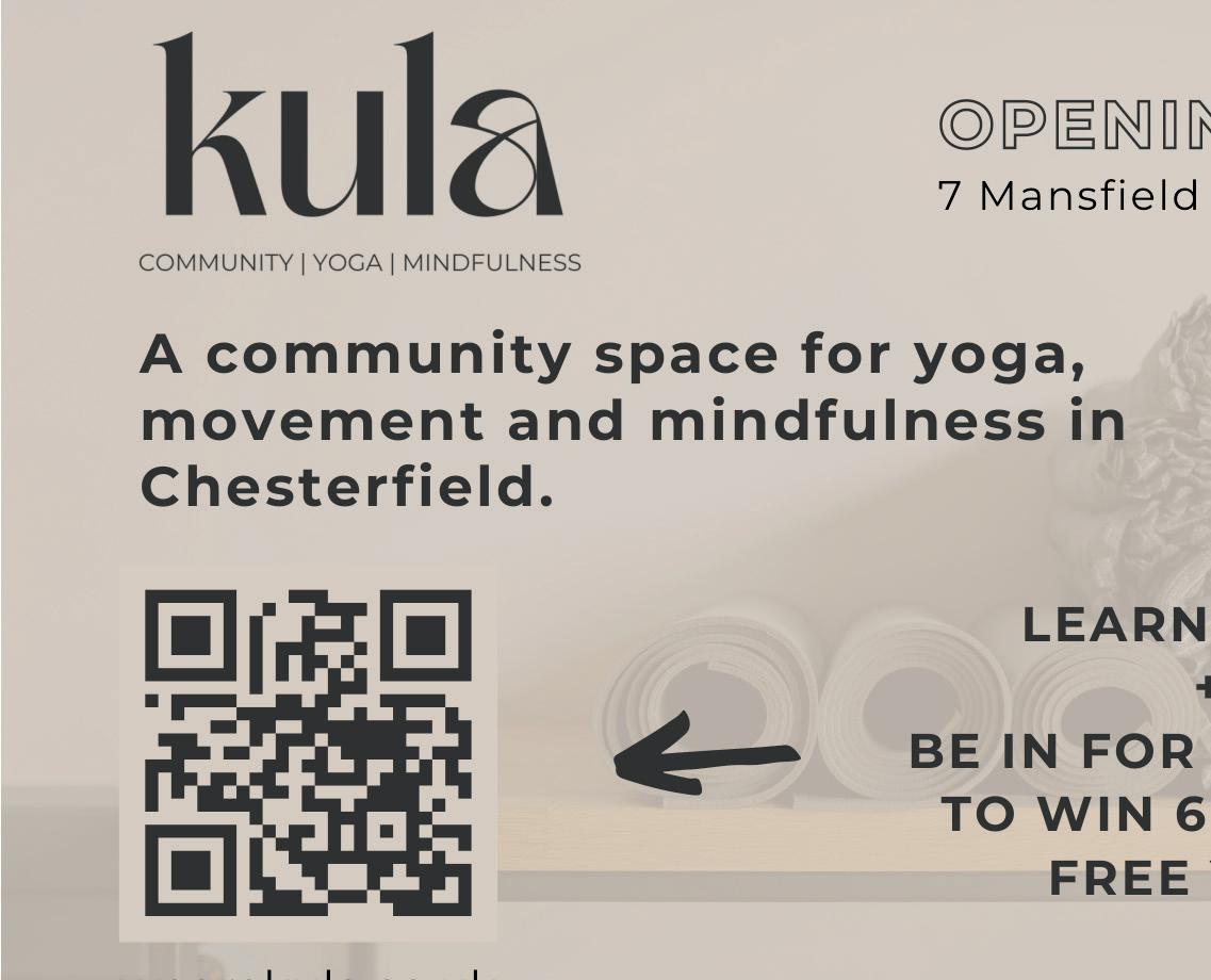 I really like the sound of Kula, it feels fresh and inclusive. I can’t wait to see the space and who knows, I might even bump into you on a class… I really am that badly co-ordinated! And if you want to give them a try scan the QR code below for a chance to win six months free yoga!