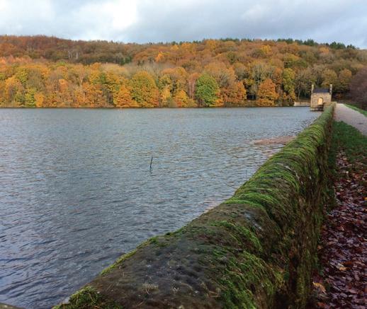 Follow this path along the side of the upper reservoir (the first of three you’ll walk around), along some boardwalk to another bridge (8) at the far side. Continue along the path now with the reservoir on your left, this path takes you to the first dam wall (do not cross the dam), continue along the path through woodland (9). You can’t really see the water any longer, but it will be back soon!