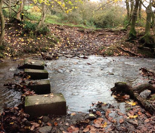 to the stream where there is no crossing point when it’s high) and cross another small stream on stepping stones (5).