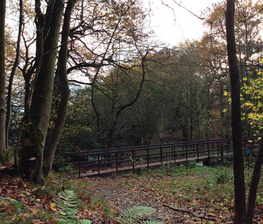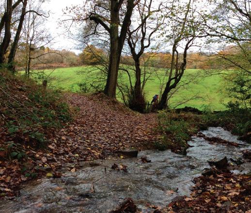 You will now drop through the woods, stay left at the fork of paths and down to a bridge (12) on the left-hand side.