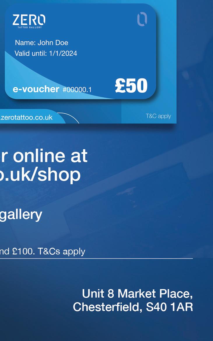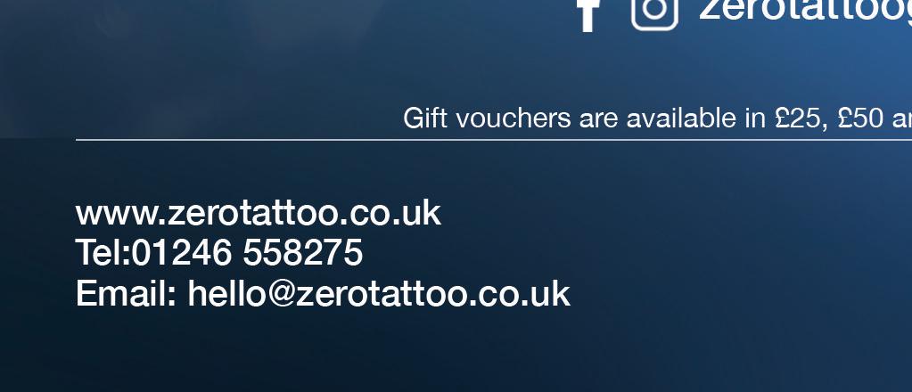 Zero Tattoo, Unit 8, Market Hall, Chesterfield S40 1AR zerotattoogallery www.zerotattoo.co.uk