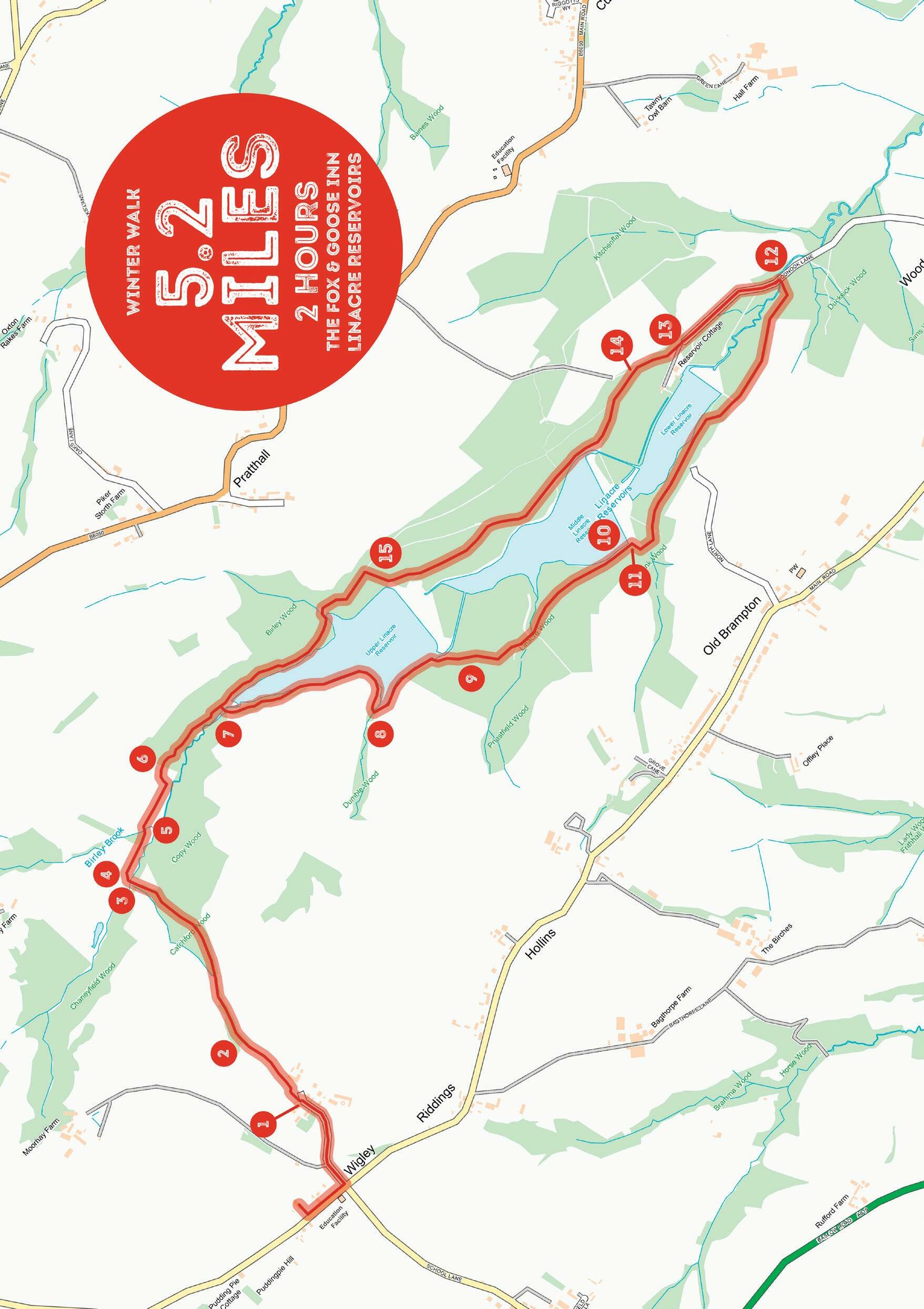 Here's a walk we're gifting to you. Starting at The Fox & Goose Inn, Wigley, where you can enjoy food and a drink, and a relatively easy five miles around Linacre reservoirs. The Fox & Goose have two dog friendly snugs and food is served everyday between 21 Dec and 2 Jan.