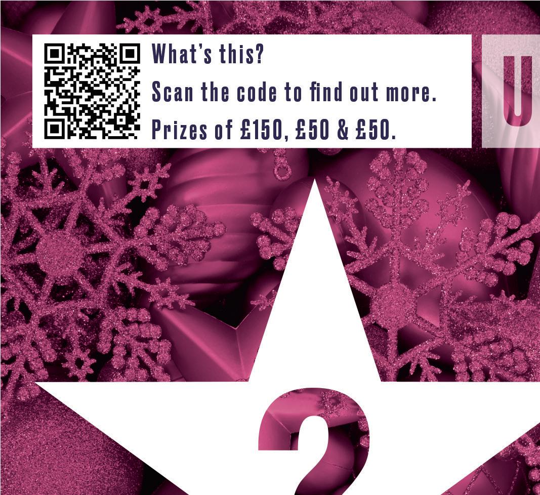 Until Friday 9 December we're displaying eight stars in businesses across town, each star contains a letter. When you have collected all eight, make a Christmas themed word. To help we've included an image to show you what you're looking for on the following page, and a map opposite showing the location of each business where you'll find a star, please note that some will need you to visit when they are open, and one star is smaller than the rest!