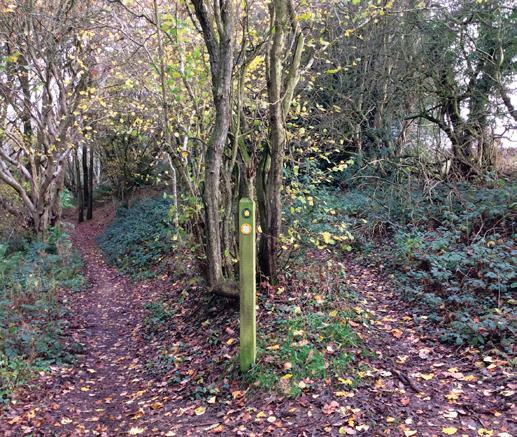 Follow the path back through the woods, through the gate in the wall and retrace your steps back to the Fox & Goose.