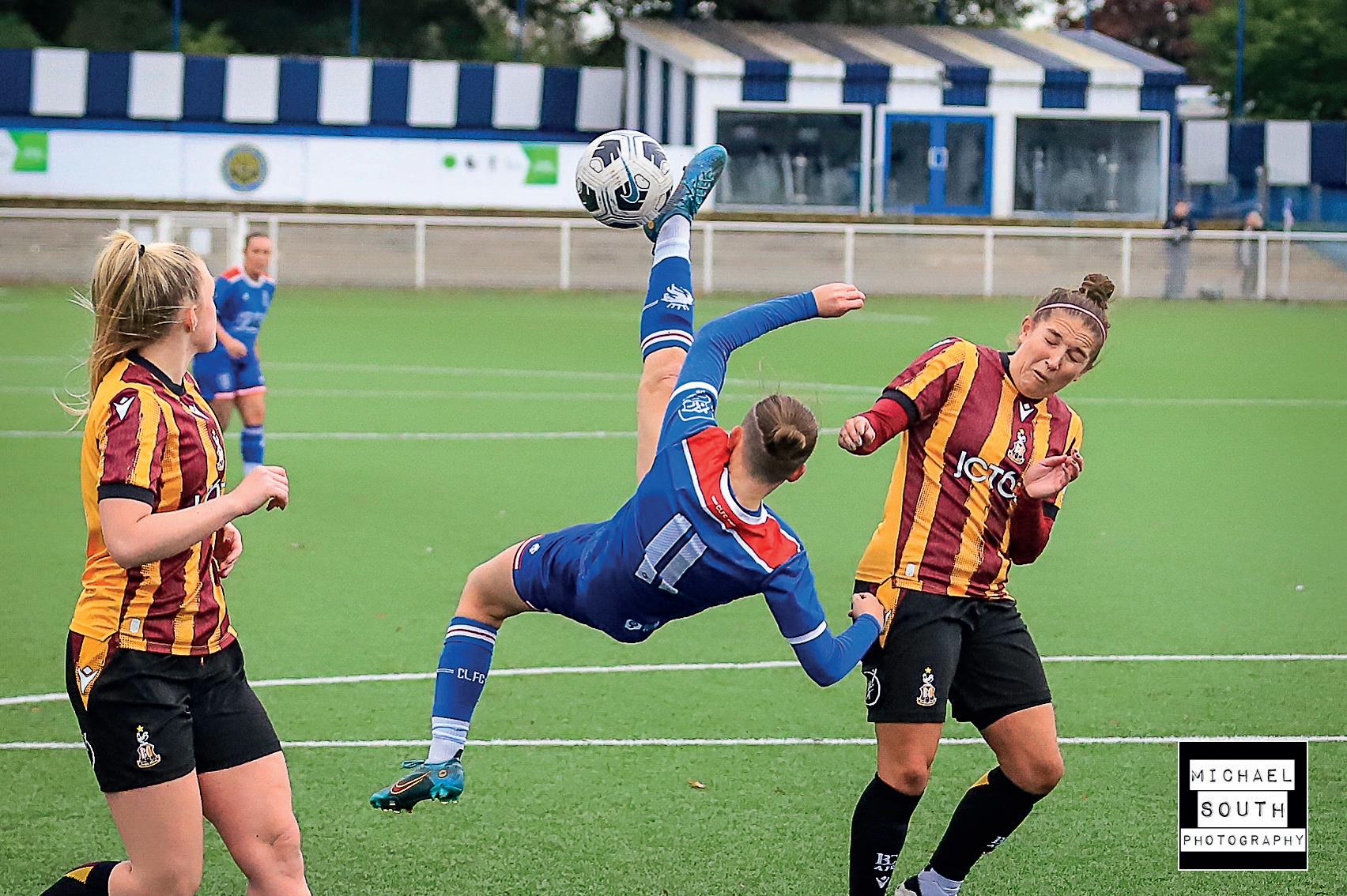 I open this month with an apology. Sorry ladies but the first game I attended with my camera this season (13 October) they lost in the FA Cup. Up until then the team were unbeaten in all league and competitions. So apologies for being the jinx. To be fair though they were beaten by a better team despite the late comeback charge, ending 1-2. Cracking bicycle kick by Fowler though trying to equalize too (see pic above. Abercrombie did net the only goal of the game for Chesterfield a few minutes before, in the 82nd min.