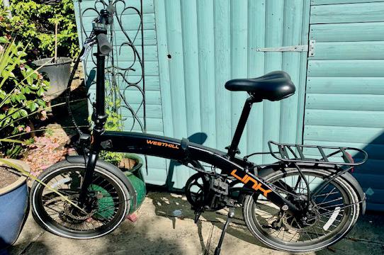 In black & orange (still the current model). VGC, puncture resistant 20” tyres, low mileage, Pannier rack, speedometer, kickstand, Retails at £1,349. See westhillbikes.com Serious offers considered.