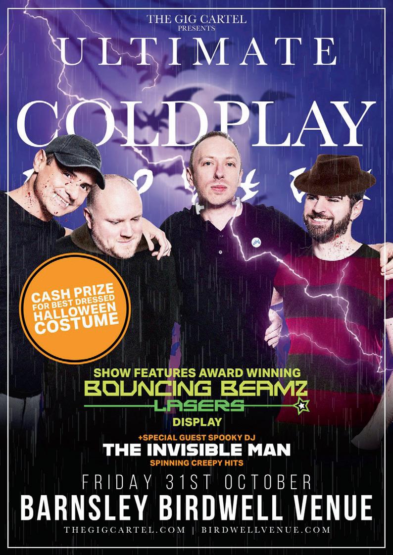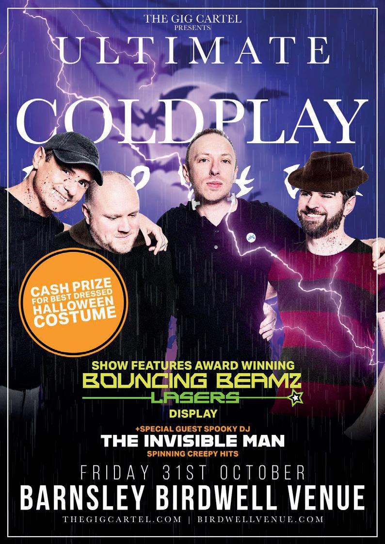 Ultimate Coldplay, amazing award winning laser light display, fancy costume cash prizes, and the ghostly invisble man DJ spinning spooky hits.