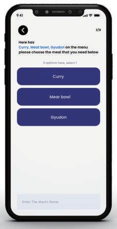 This online ordering mode is mainly based on the psychological test-like answering mode that can make blind people more intui�vely rely on auditory ordering. Also, we have marked explicitly page content prompts on each page. We add appropriate and clear Alt text to the images that appear. In addi�on, blind people can share their needs with others for assistance in ordering meals.