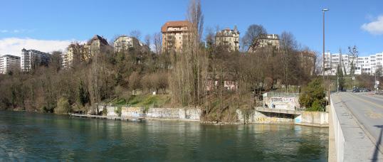 La rive du Rhône est depuis l’embouchure du lac jusqu’au pont sous-terre, aménagé et majoritaire ment minéral.