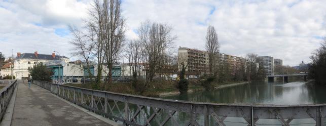 L’implantation des grands équipements publics dé termine un moment important pour l’évolution de la Jonction. Avec eux disparaîtra le caractère rural que ce territoire avait depuis toujours. Elle fait place à un lieu qui, sans être encore urbain, est fortement rattaché à la ville. Cette époque tran sitoire est marquée par la cohabitation d’usines et de fermes sur un même sol. Les nouvelles prome nades sont donc rejetées au-delà des cours d’eau, au Bois de la Bâtie qui est relié à la Jonction par une passerelle, et sur l’autre rive, à la promenade au pied des falaises.