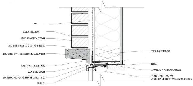 Stainless steel wall ties at max. 900 mm horizontal and 450mm vertical centers with 225mm vertical centers at reveals, within 360mm of openings. Cavities to be closed around openings with THERMABATE PVC-U cavity closures or similar and approved Agreement Certificate No. 91/2648. Build in pitch polymer cavity trays with stop ends as necessary. Flashing's at all abutments with Code 4 lead. Horizontal DPC'S to be a minimum 150mm above GL and overlapped at junctions a minimum 100mm.