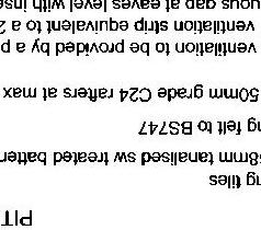 WARM FLAT ROOF To achieve U value 0.18 W/m²K To Structural Engineer's details. Flat roof to be single ply membrane roofing providing aa fire rating for surface spread of flame with a current BBA or WIMLAS Certificate and laid to specialist specification. Single ply membrane to be fixed to 22mm exterior quality plywood over 125mm Kingspan Thermaroof TR27 /FM LPC Insulation bonded to 22mm external quality plywood decking or similar approved on sw firings to minimum 1 in 80 fall on C24 flat roof joists as per Structural Engineer's details and calculations. Underside of joists to have 12.5mm foil backed plasterboard and skim. Interior Interior Exterior Existing wall Roof decking, OSB3 Oriented Strand Board Tongue & Groove - 2.4m x 590mm x 18mm Structural joists, as detail. 12.5mm foil backed plasterboard and skim. Continue foil vapor control layer. Single ply membrane to be fixed to 22mm exterior quality plywood. Slope 1:80 Lead flashing. Timber fillet. 125mm Kingspan Thermaroof TR27 /FM LPC. Interior Exterior Allow for 100mm ferrings 18 PITCHED ROOF CONSTRUCTION Tiles type and colour to match the existing on 25 x 38mm SW battens on TYVEK SUPRO fully breathable roofing felt on timber as specified by Structural Engineer - refer to drawings. Pitched roof (sloping roof) to be insulated, provide 100mm thick CELOTEX GA4000 insulation between rafters and 50mm fixed underneath rafters. Fix polythene (1000 gauge), vapour control layer including air leakage (permable underlay) barrier with 2x12.5mm plasterboard with 3mm plaster skim Achieves 0.11W/m²K. Temporary works required shown indicatively. Temporary works design by contractor Existing timber floor joists Joist hanger 3:1 sand/cement dry pack to be installed to ensure tight fit between beam and wall over Written dimensions to be taken in preferences to scaled dimensions. The Contractor is responsible for checking all dimensions before work starts. All work is to be carried out to the requirements, and to the satisfaction of the Local Authority. These drawings are for planning purposes only. Dimensions Local Authority Rev Date Description Made Checked Drawing Status: FOR APPROVAL Client Project Drawing Title Drawn/Design Scales: AS SHOWN @ A1 Drawing No Date Rev RPR PLANNING Office 5, 37 Stanmore Hill London, HA7 3DS. Tel: Mobile: Web: Email: 078 9661 7854 www. rprplanning.co.uk info@rprplanning.co.uk 25/09/2023 09:57:47 AM C:\Users\saada\Desktop\RPR PLANNING\99 ORCHARD GATE \2023.06.2399 Orchard GateBuilding Regulation .rvt99 Orchard Gate, Greenford UB6 0QN TYPICAL DETAILS 05/02/23 BR-108 SCALE: 1 20 @ A3 1 10 @ A1 DETAIL -Warm flat roof SCALE: 1 20 @ A3 1 10 @ A1 DETAIL -Exterior slab SCALE: 1 20 @ A3 1 10 @ A1 DETAIL -Pitch roof-Ceiling New Dwelling SCALE: 1 20 @ A3 1 10 @ A1 DETAIL -Typical Steel Beam installation