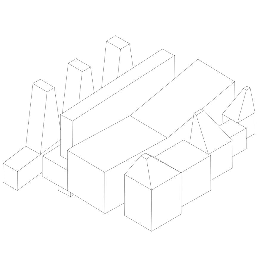 massing of the building was inspired by the messing drawings from the castle, drawing insporation from the back and forth pattern seen in many of the messing drawings.