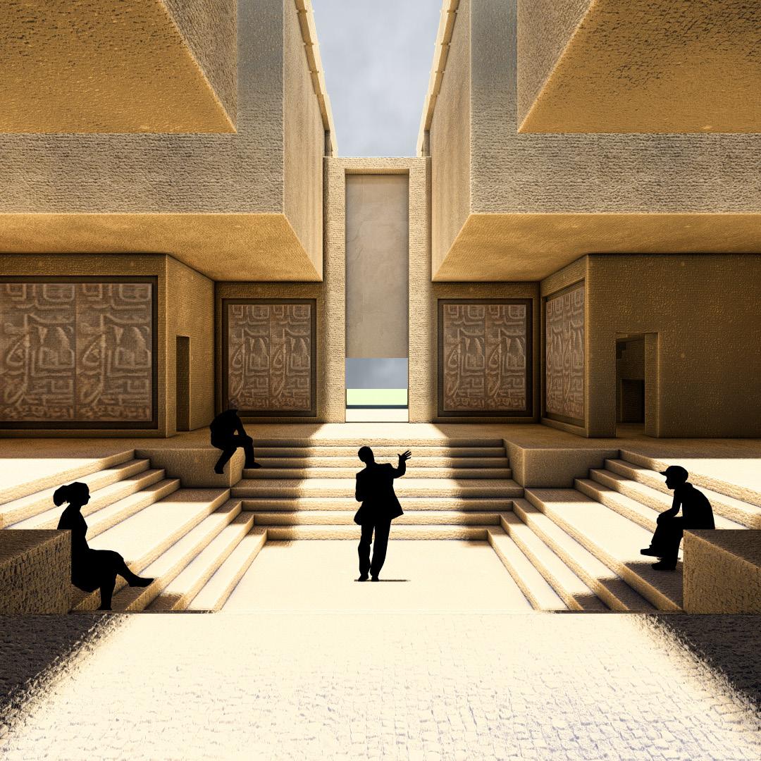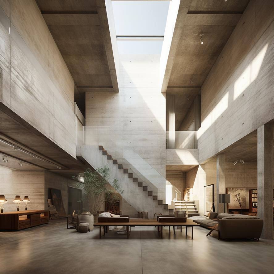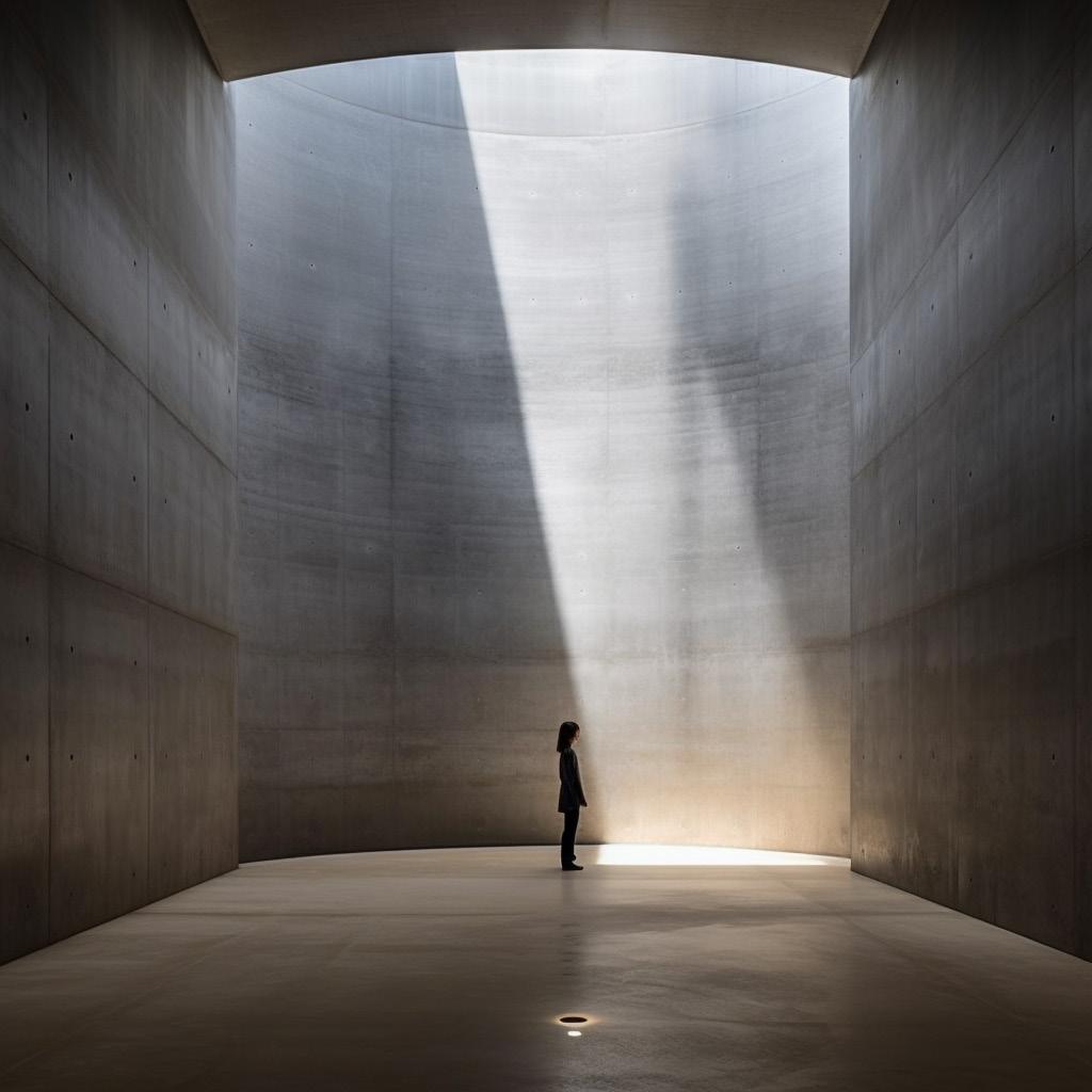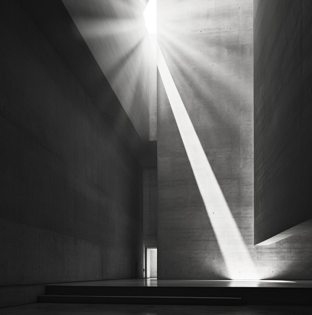 From the beginning, I wanted to convey the ideas of heavy monolithic architecture through the use of heavy massing of thick walls and ceilings. I wanted users to have unique and dramatic encounters with light. The goal of my AI images was to elicit the feelings of intrigue relating to the