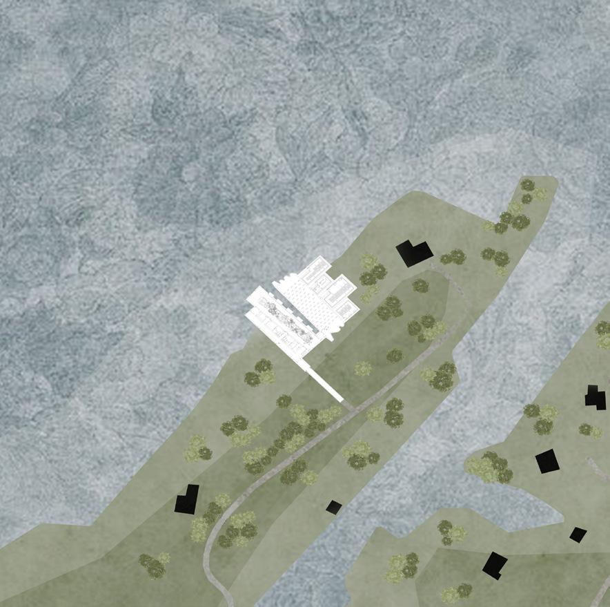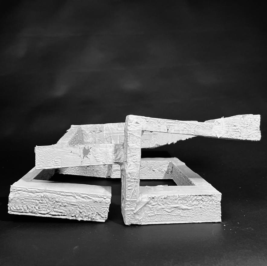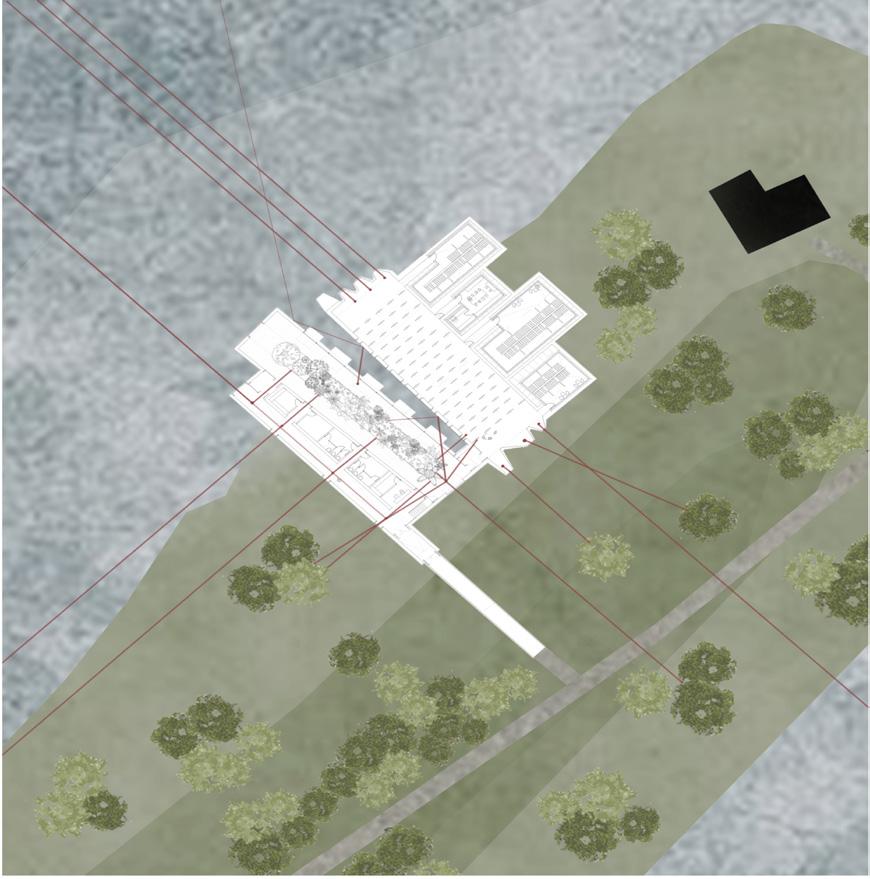idea of having to enter and explore the space in order to understand it. From these AI images and abstract model we applied these ideas to a site of our choosing within Alexandria, NY, to create our interpretation of a library.
