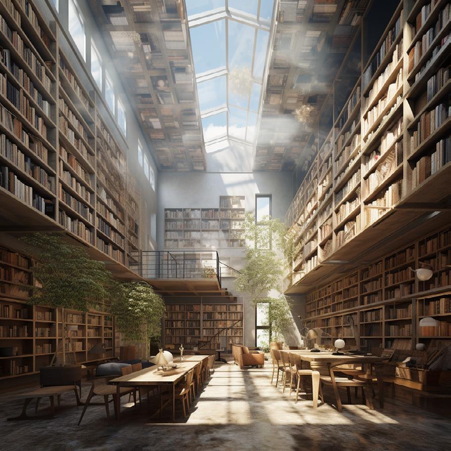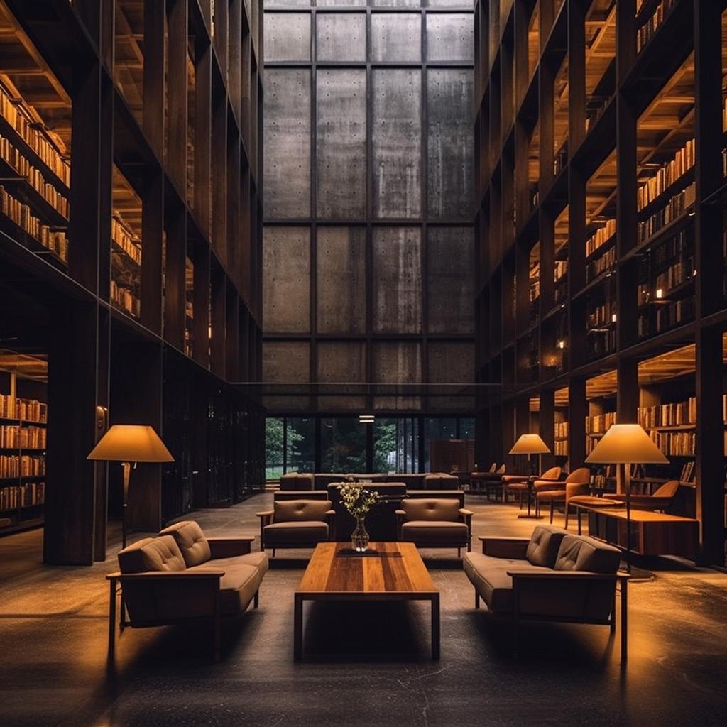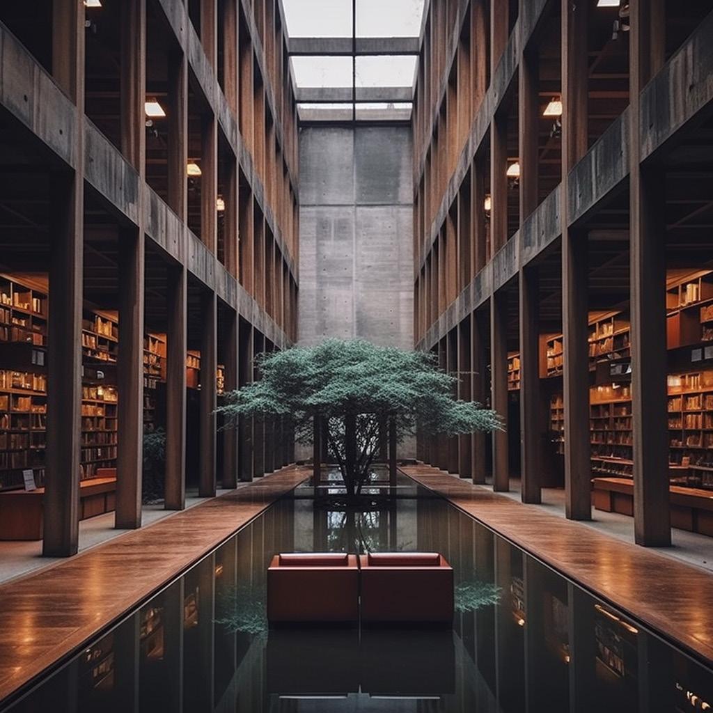 When first moving into AI images I initially fed the machine props that included key words such as “dramatic indirict lighting, monolithic space, and concrete. As my project and concept continued to grow I began to adapt the AI image prompts to match my new intents for the project, including phrasing such as walls made of books, and narrow central skylight. This allowed me to get a visual of how my project may look, while also potentially inspiring new ideas for my design.