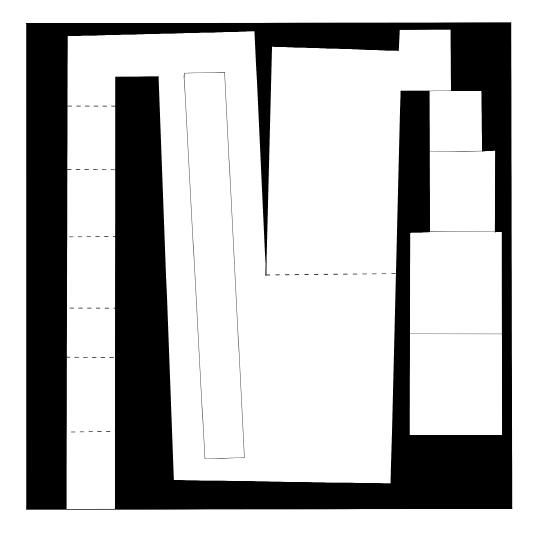 This castle seemed to circulate around smaller main spaces. These three rectangles make up the series of voids, while supporting spaces travel around the perimeter.