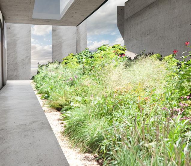 the viewer back to nature as they begin to move through the building. The walls within the garden space reflect the dimensions of the garden itself. The telescoping apperatures in the exhibition space, frame specific views outside of the building, to bring the viewer back to nature. The fourth space that houses the photogrophy development space and storage for the prints, opens to the sky allowing for intereacting moments of light.