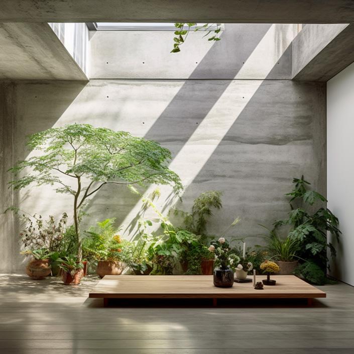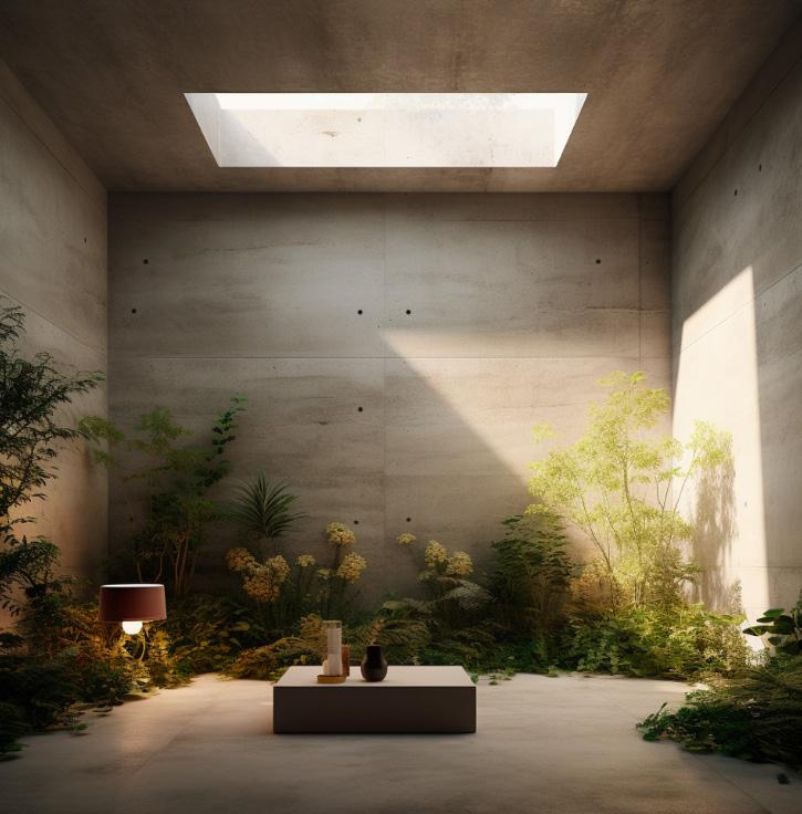 The insporation for the AI and massing were “interior of a concrete building, plant archival, dramatic lighting, designed by Carlo Scarpa, Louis Kahn, Alvar Aalto”. These images helped to visualize what a space to collect, display, and archvive plants would look like from the interior. The overall
