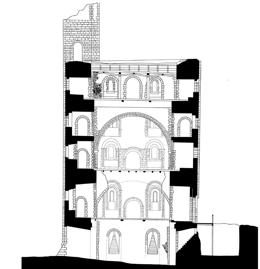 Orford Castle, commissioned by King Henry II in 1173, was designed in the Byzantine style. The castle is heavily built with a labyrinth of interconnected rooms. The large circle in the center proposes the rest of the massing, marking it as important. This also corresponds with the idea that the exterior does not show nor hint to what is happening inside.