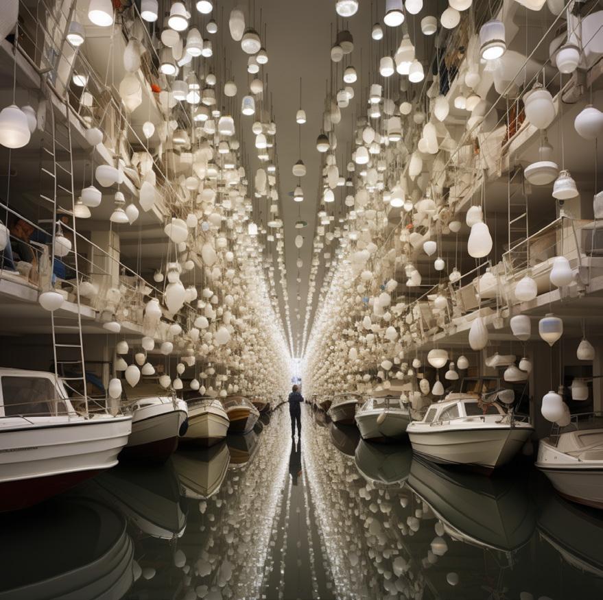 These Ai images helped to guide a project that served what was initially intended. Four distinct corner all feeding off of a central core, filled with what would be varying programmatic conditions. A main core that would get an abundance of natural light, and then unique ways of bringing in natural light into the four corners. At this point the light that was coming in was baed around the four seasons, and each corner had an orientation that would give it more or less natural light depending on what season would be held there.
