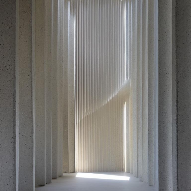 collection of the library and where it would be located in Alexandria, NY. For the prompts, I referenced Enric Mestre sculptures and Nicholas Alan Cope photography. I also used different combinations of the following words/phrases: connection of roads, traveling on roads and bridges, pattern of texture, repetition, large openings, shadows, monolithic walls forming space, staggering effect, large daylight openings, thick perimeter walls, concrete, wood texture, comparison of negative and positive space.