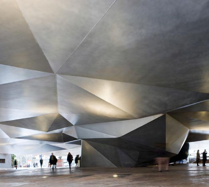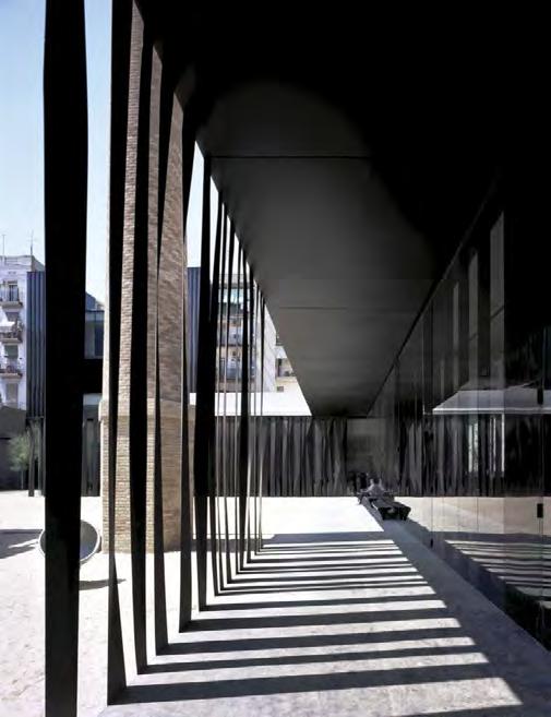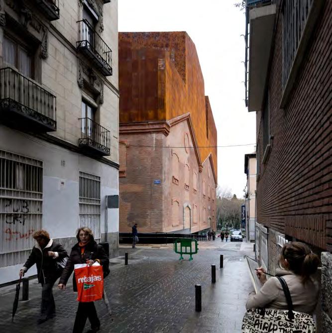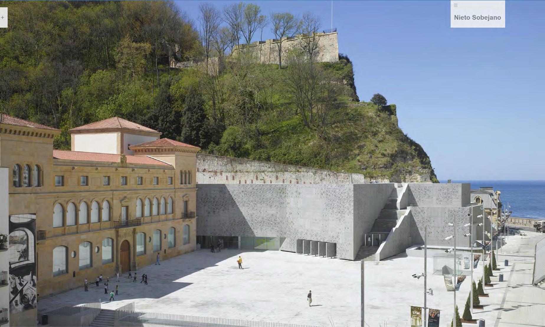 The image on the left shows another existing building by Nieto Sobejano, known as the San Telmo Museo. This project consisted of an addition (in gray cladding) to the original building (made out of masonry and roman arched windows)