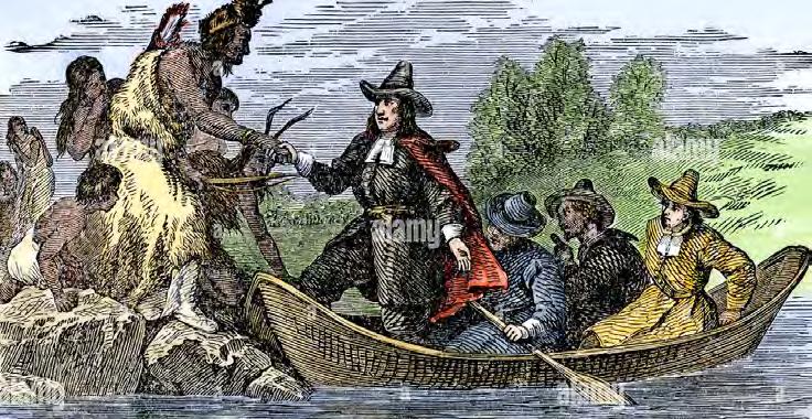 Roger Williams founded what we now call Rhode Island when he was exiled from the Massachusetts colony in 1635. He stumbled upon land which now is Providence. He is often seen in representation as being welcomed by the indigenous peoples, however with continued pressures from the colonies the native tribes were forced to sign treaties that led to King Philip’s War. In the late 1630s, a deed was agreed upon by the local sachems, Canonicus and Miantonomi, giving land to Williams. The deed overtime was interpreted in different ways and forged, granting more land than originally agreed upon. Since the deed used European standards of land ownership unknown to the Indigenous peoples, it remains evident the land was meant to be roamable to Williams, not owned. Today this land is where Brown University is found.