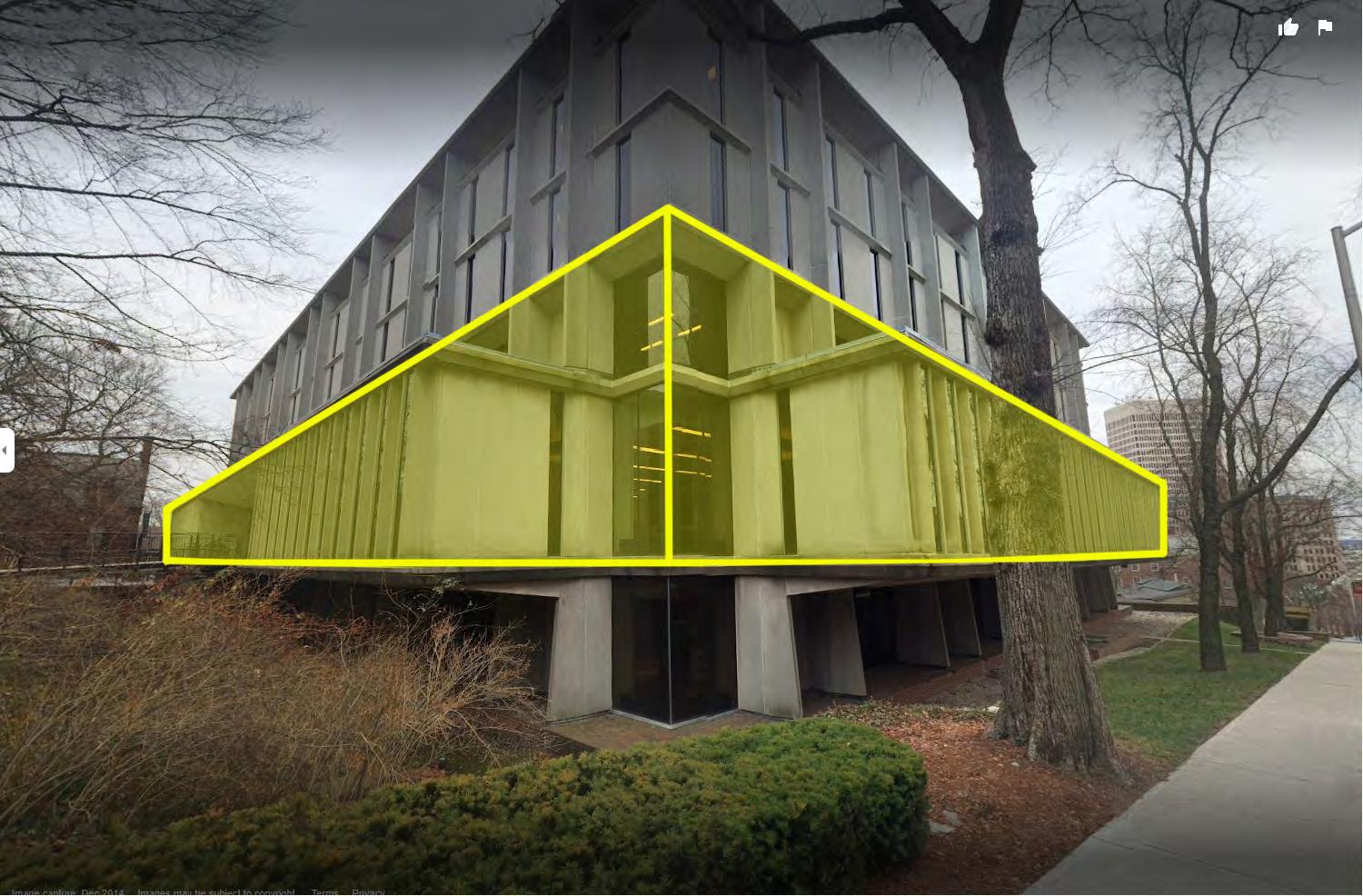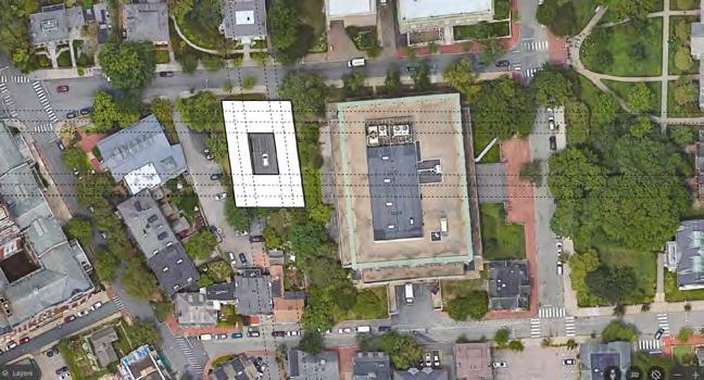 The image to the left is the site map where the red hatched area represents an existing parking servicing the largest library Brown University has. It also sits on the southern side of College Hill Road, in downtown Providence, RI
