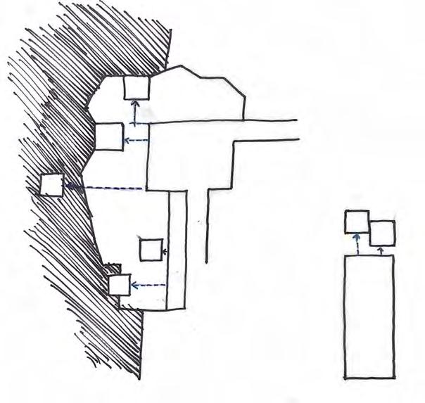 The intervention situates itself within the ground to unleash the spirit of the site to the public. A new trail system invites the indigenous culture back to the chair site at a safe distance. New culture can be initiated with an inserted program. This allows new programs to be spiritually rooted to the context of the site. The lanterns showcase the spiritual quality of the earth at a larger scale similar to the previous memory devices.