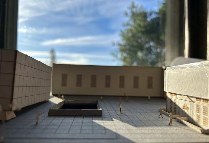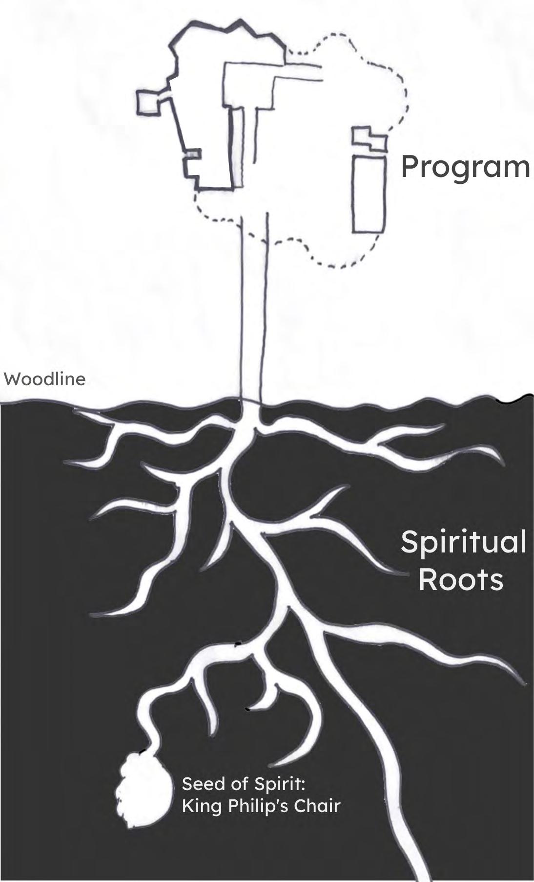 The existing barn structure is maintained, however gutted to become an indoor meeting space. The existing retaining wall is also maintained from the demolished office building. This provides a separation between public and academic functions. The new insertion has 3 main programmatic elements; Public, Academic and Cultural. These are the 3 players that have contributed to the site overtime. Public space allows powwows to occur, and reinvites other indigenous cultures to the site. It includes a series of exposition and learning spaces. The academic wing contains a library, discussion space, working hall and research center. The research facility aims to return Browns currently owned indigenous objects to their rightful places through NAGPRA. Cultural spaces are based around the function of gathering. This includes a resource center, art hall, meditative hall and other learning spaces for indigenous youth to respect their cultural heritage.