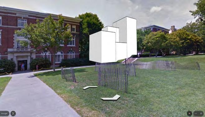 Everything on this sheet is process work that led me to the discovery of the final site behind Rockefeller Library. The second site, Simmons Quad was also a valid contender and has the potential for a beautiful project.