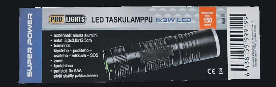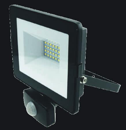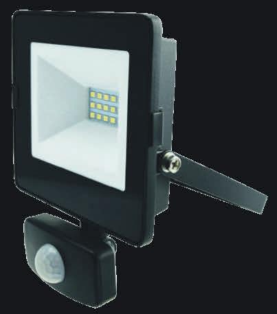10W 800LM LIIKETUNNISTIMELLA PIR-liiketunnistimella varustettu 10 W led-valonheitin valaistukseen sisällä ja ulkona. Valoteho 1000 lm. Musta runko alumiinia Paloajan-, tunnistusherkkyyden- ja valoherkkyyden säätö. Myös PIRtunnistimen asento säädettävissä. Takuu kaksi vuotta. IP44. (norm. 14,95 €)