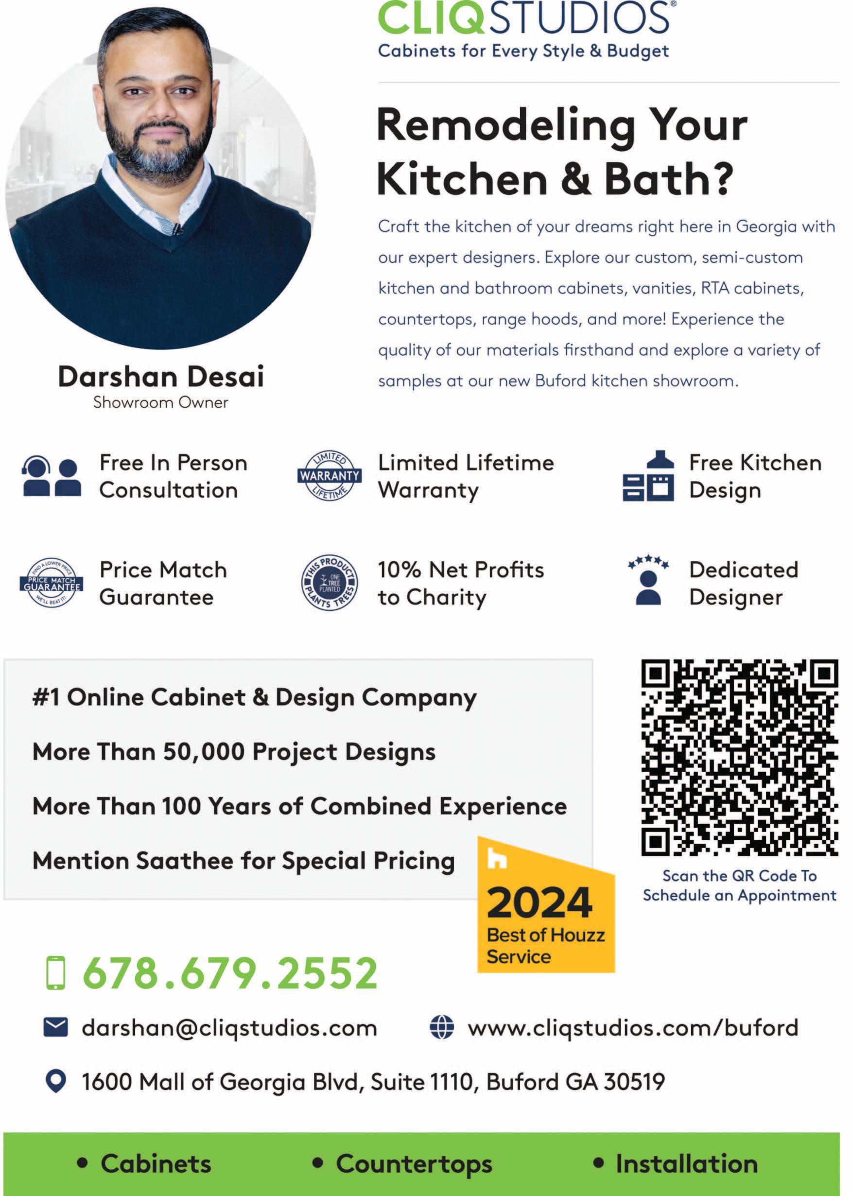 Burmese Coconut Curry: pg 74 Puzzles & Quizzes: pg 98-103 Classifieds: pg 108 April 2024 Saathee.com Bridging America and the Indian Subcontinent April 2024 Saathee.com Bridging America and the Indian Subcontinent