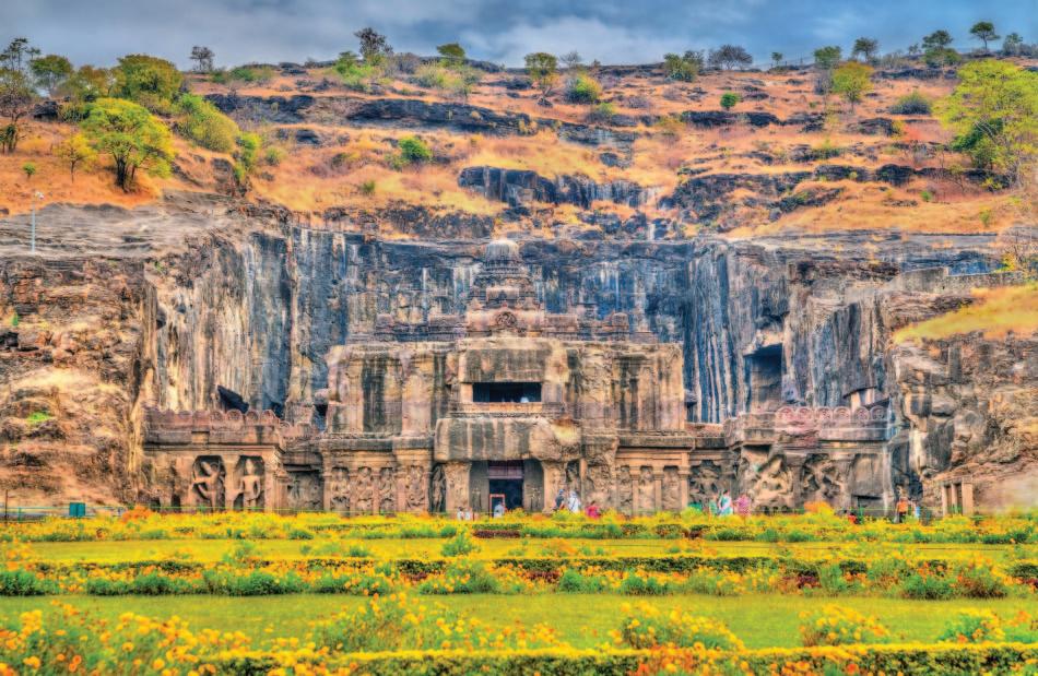 The biggest temple at Ellora, an ensemble of 34 caves, showcases a spirit of coexistence and religious tolerance through the architectural activities carried out by the followers of three prominent religions: Buddhism, Hinduism, and Jainism. The rock-cut activity was carried out in three phases from the 6th century to the 12th century.