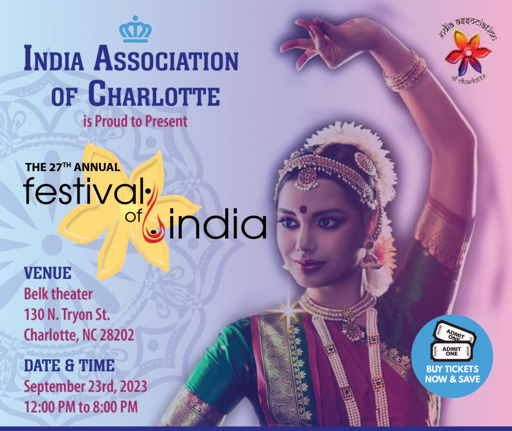India Association of Charlotte will present their annual 27th Festival of India at Belk Theater and on Tryon Street Uptown, on Saturday September 23, 2023. This event celebrates India’s rich heritage of artistic and cultural diversity and is an effort to present a glimpse of that to the mainstream community in and around the Queen City. Prepare to be dazzled, entertained, and learn something about the culture as you and your family sample Indian culinary delights, get an artistic Henna tattoo, watch and dance along to popular and pulsating Bollywood music, learn about yoga, see Indian classical dance, and marvel at captivating fashions! The entire family can enjoy this family-friendly event, catered to all age groups, with something for everyone. See details on Indiafestival.iacofcarolinas.org