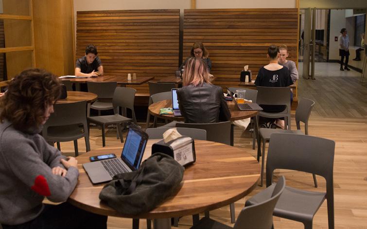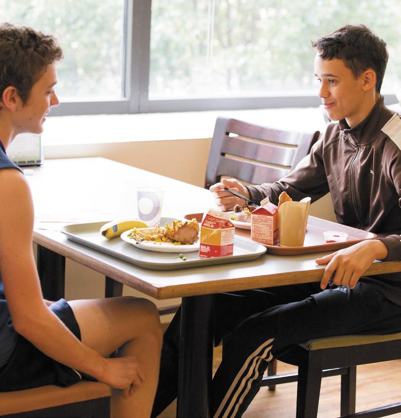 The SAB/Juilliard Cafe, a full service dining hall located in the same building as SAB, was renovated in 2019 and features a variety of food stations and a spacious, modern dining space. Room & Board fees include 20 meals per week in the cafeteria. Additional snacks and beverages are available for purchase at an express food mart in the residence hall. Students are permitted to take food from the cafeteria to the dorm or outdoors to picnic.