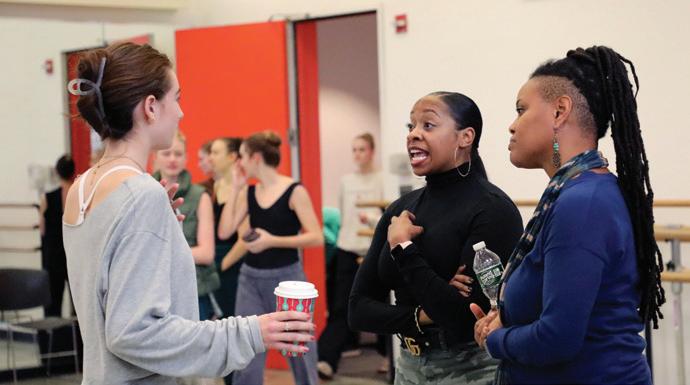 Throughout the year, our alumni have served as teachers and role models in the studio as faculty, guest faculty, and mentors; members of the Board of Directors, Advisory Council, and Alumni Advisory Committee on Diversity & Inclusion; panelists during student talkbacks; choreographers creating new pieces on our students; members of a focus group around access and belonging; advisors on the development of a performance hair policy; keynote speakers for educational and fundraising events; recruiters for the National Audition Tour; and key supporters helping raise crucial scholarship funds as event chairs and through personal donations.