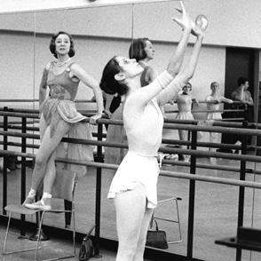 Balanchine choreographs The Nutcracker, providing future generations of SAB students with an inspiring and rigorous performance opportunity. Pictured Kay Mazzo and student Peter Boal.