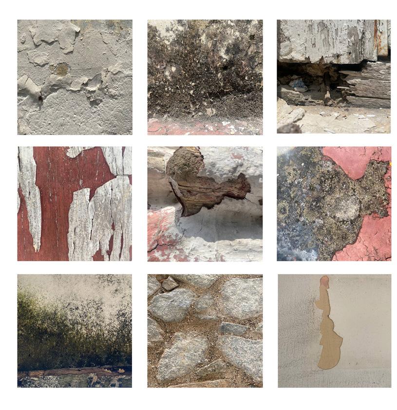This shows a collage of different textures found on the site. The different patterns give different messages to the observer. In the end, it all relates to the past which could be due to overtime weathering or memories associated with each pattern