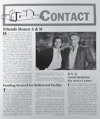 The Clinic remembers longtime friend and supporter Jerry Moss. A recording executive and co-founder of A&M records with Herb Alpert, Jerry first began supporting the Clinic in 1972 with a gi� of $10,000 that literally saved the Clinic from having to close its doors. The Friends honored Jerry and Herb at their Annual Dinner Gala in 1988 and they remained Clinic supporters for decades. Friends Board Member Ellen Hoberman recalls, “Herb and Jerry were beloved. The outpouring for the Clinic Dinner was overwhelming and we had to move to the Beverly Hilton to accommodate everyone who wanted to attend.”