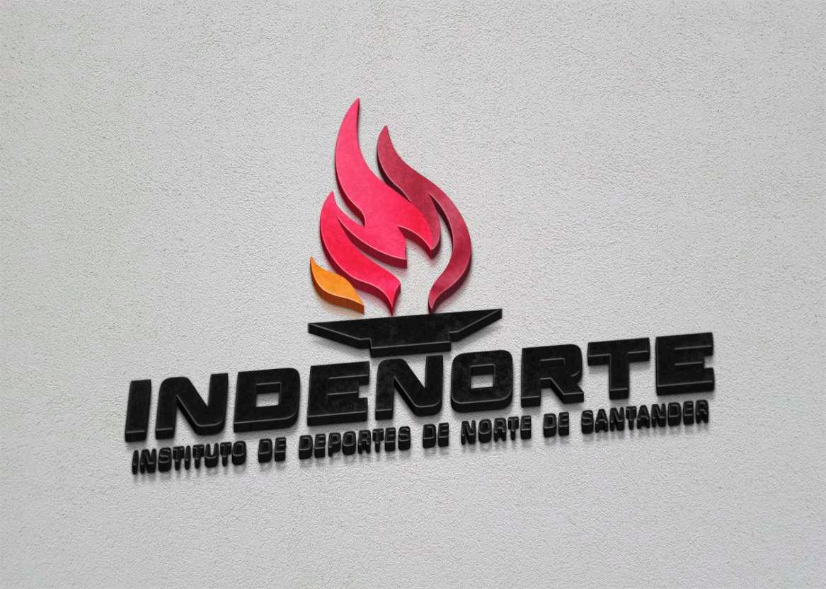 La identidad gráfica de INDENORTE se presenta como una composición gráfica conformada por un isologo e isotipo con carácter sólido y elementos comunicativos explícitos que le otorgan los rasgos diferenciadores necesarios para el logro del proceso comunicativo como Instituto. Compuesta por dos partes, como se ha mencionado, dispuestas en una configuración vertical, en donde la parte superior es un isologo, es decir, un símbolo gráfico que conjuga una serie de elementos sígnicos característicos asociados estrechamente a la marca y al deporte; una segunda parte es un isotipo, con el nombre del instituto con alta fuerza y relevancia dentro de todo el conjunto.