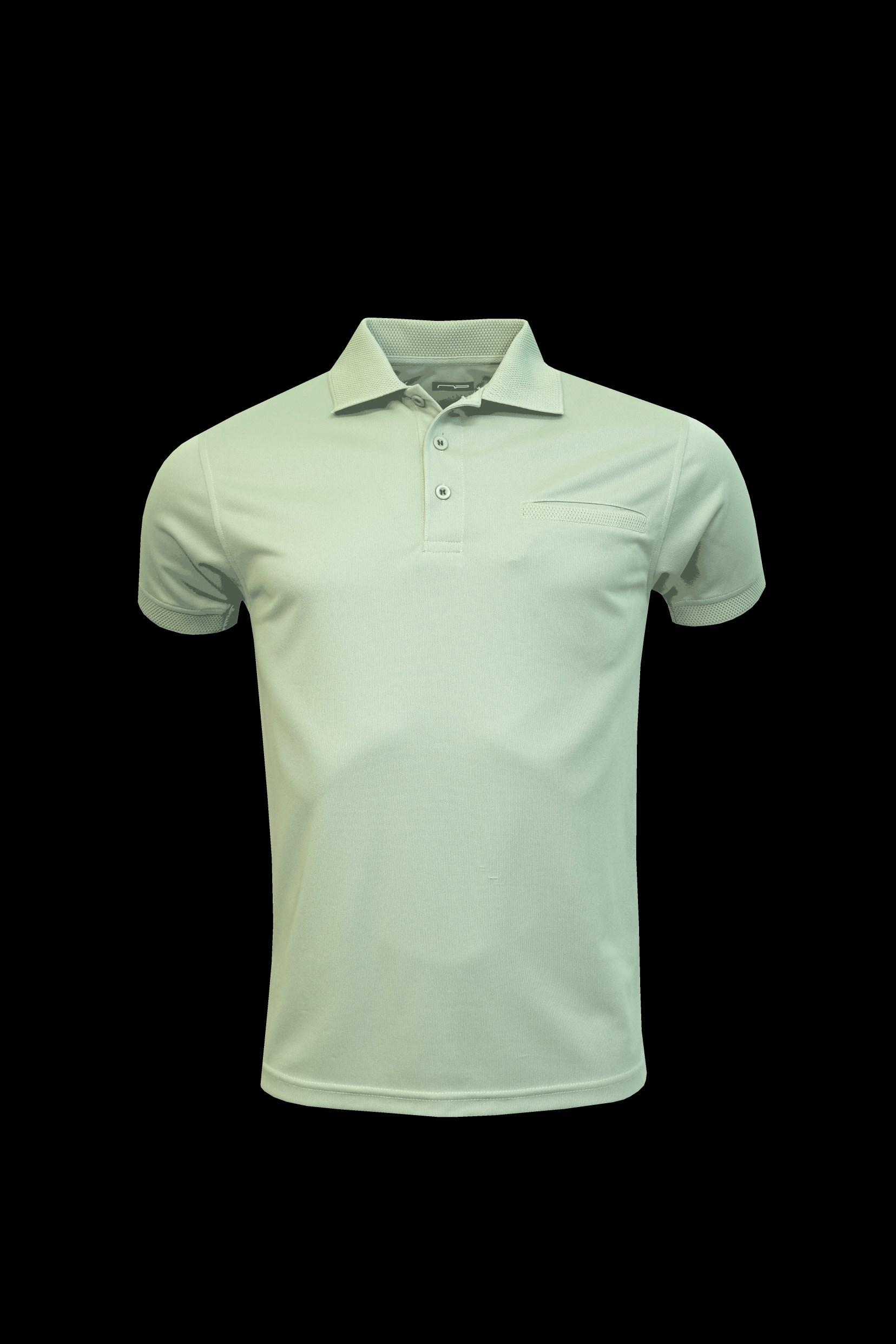 Piké i vårt tekniska lucoolmaterial med rutnätsmönstrad kropp. Enfärgad och ribbstickad krage och ärmmudd.