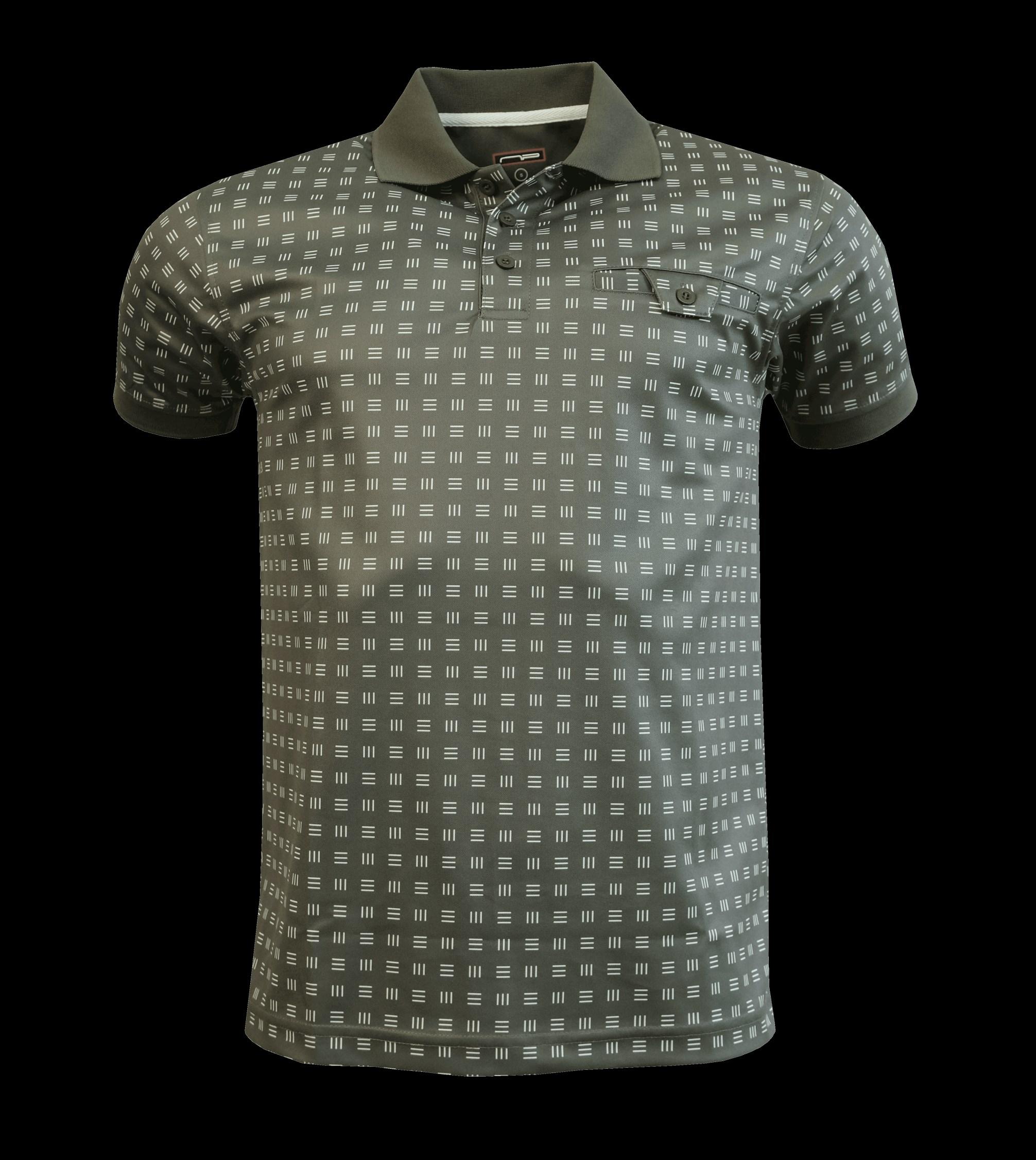 Piké med infälld bröstficka i vårt tekniska lucoolmaterial med rombmönster i kontrastfärg. Ribbstickad och enfärgad krage samt ärmmudd.