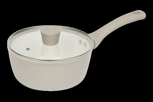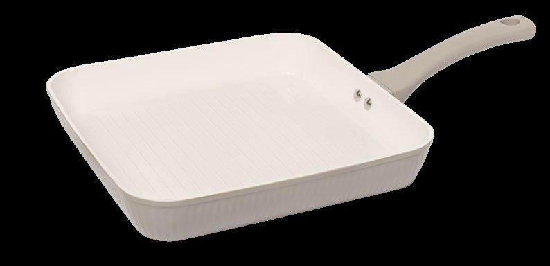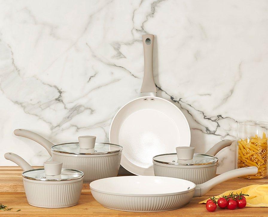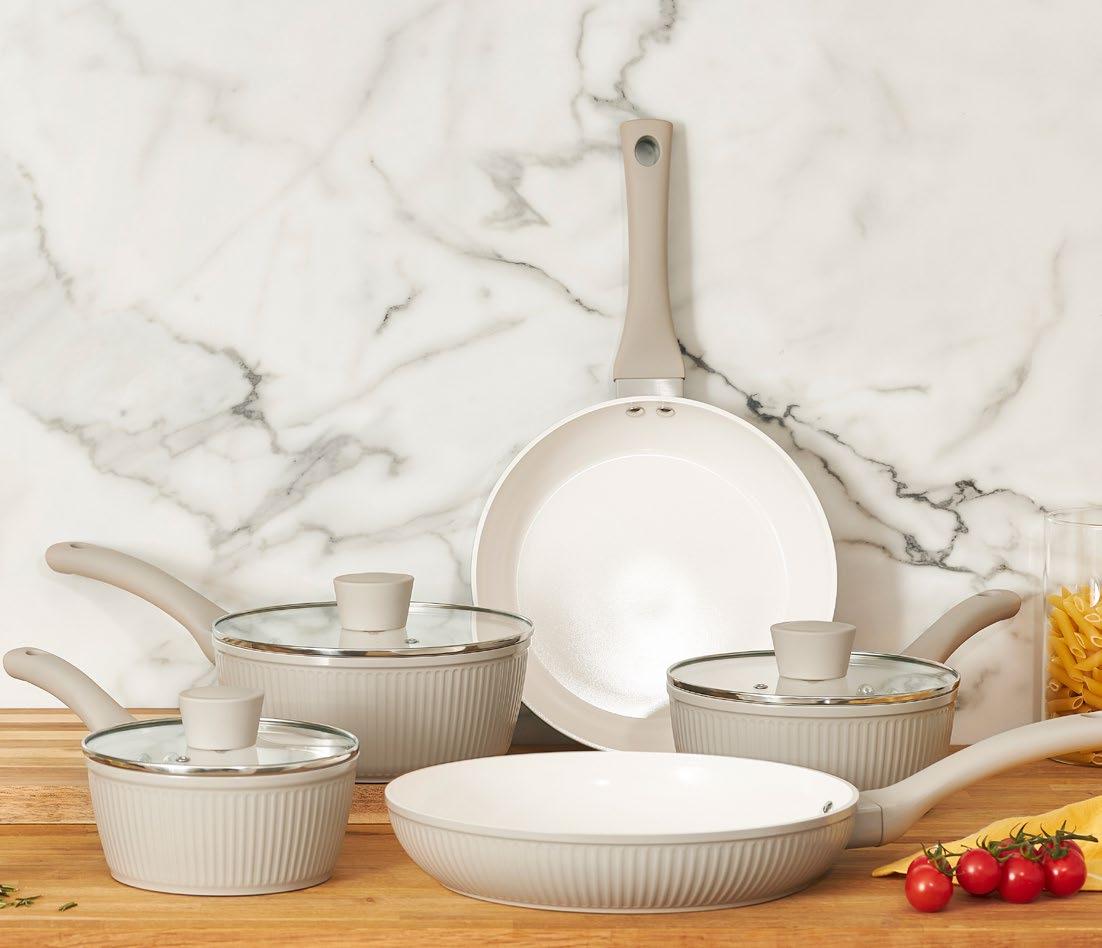 The Ribbed Collection pairs calm tones, soft contrast and tactile detail with effortless function. Its putty exterior and white non-stick interior create a soothing look for relaxed routines.