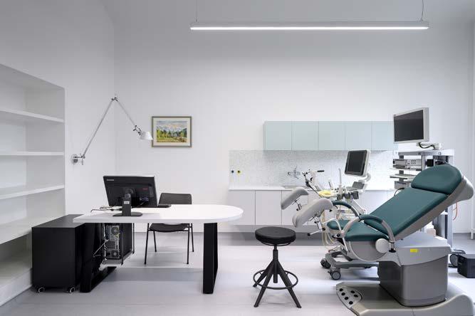 The exam room was designed with a focus on functionality and efficiency, ensuring that it meets the requirements of a medical setting while maintaining a clean and organized appearance.