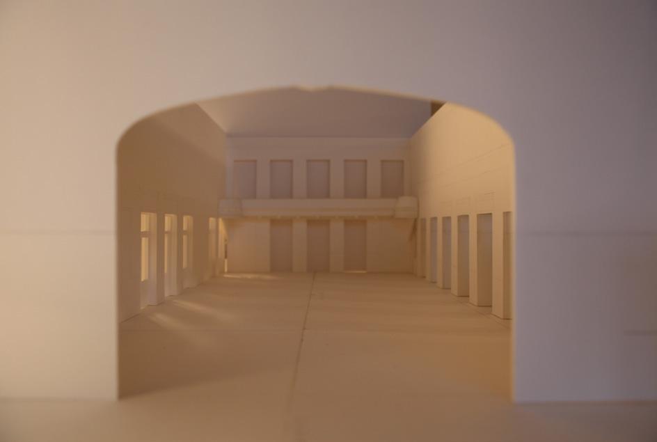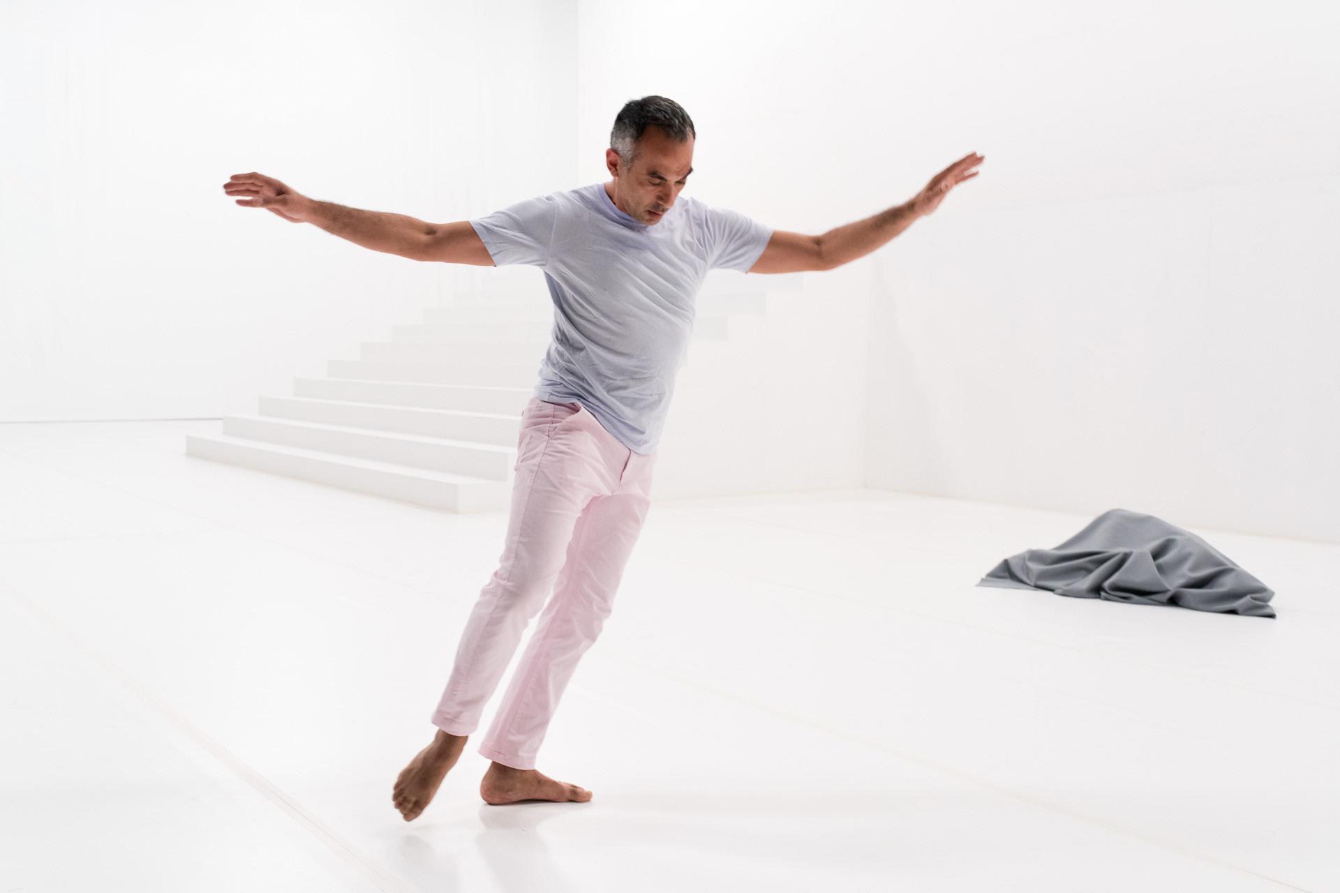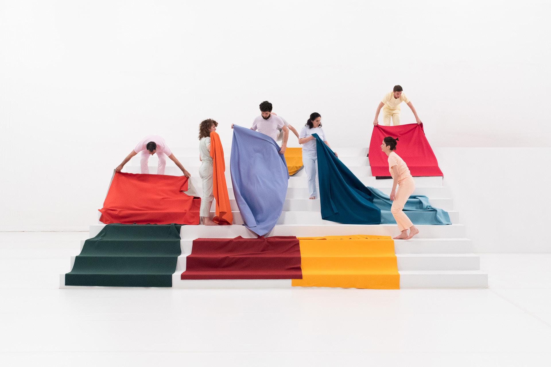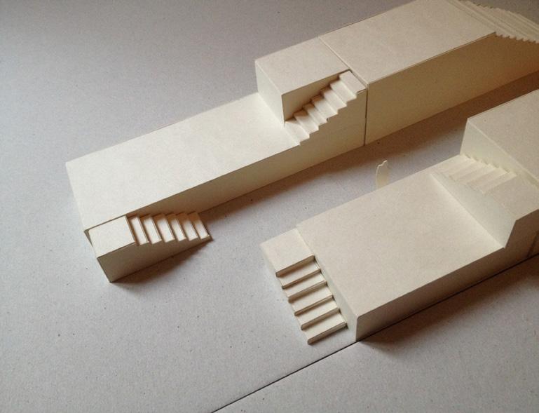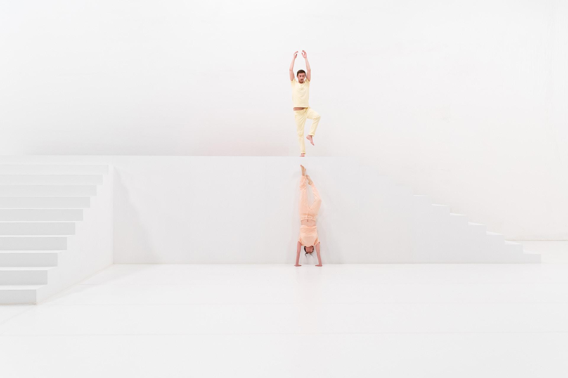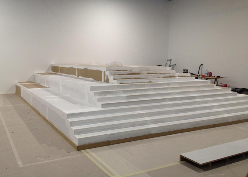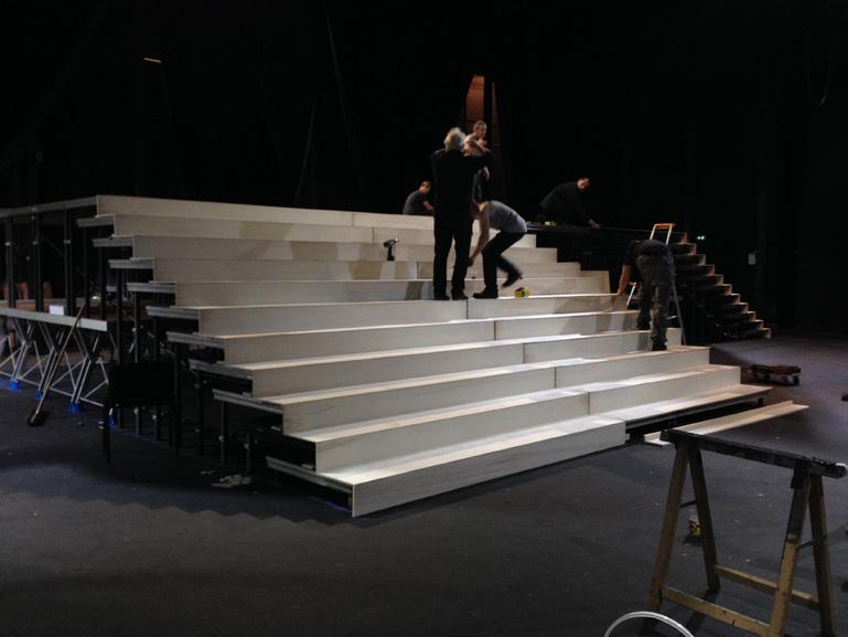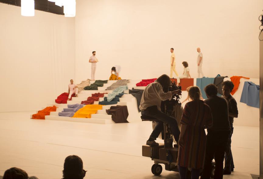 Conception et réalisation d’une scénographie pour le tournage du film 16 mm sur la grande scène : Deux escaliers monumentaux dans un espace blanc